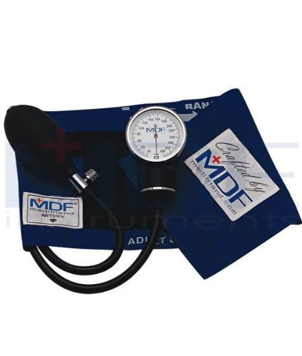 With its lifetime calibration, the MDF Professional Aneroid Sphygmomanometer is ideal for medical professionals in all settings. Stress-tested over 3,000 times and calibrated 5 times before final assembly, it is one of the most durable, accurate, and dependable blood pressure measurement devices on the market. Gauge: A precise, certified 300mmHg manometer attains the accuracy of +/- 3 mmHg without pin stop, and features an easily identifiable high-contrast dial. The die-cast zinc manometer housing is finished in textured baked enamel and outfitted with a heavy-duty clip so it can be easily attached to the gauge holder on the cuff. Cuff & Inflation Bag: Resistant to abrasion, chemicals (chlorine and peroxide), and moisture, the adult Velcro cuff is constructed of high-molecular polymer nylon. Sized to meet American Heart Association recommendations, the artery indicator label and index range further ensure proper cuffing for correct arterial compression. The double tube seamless inflat